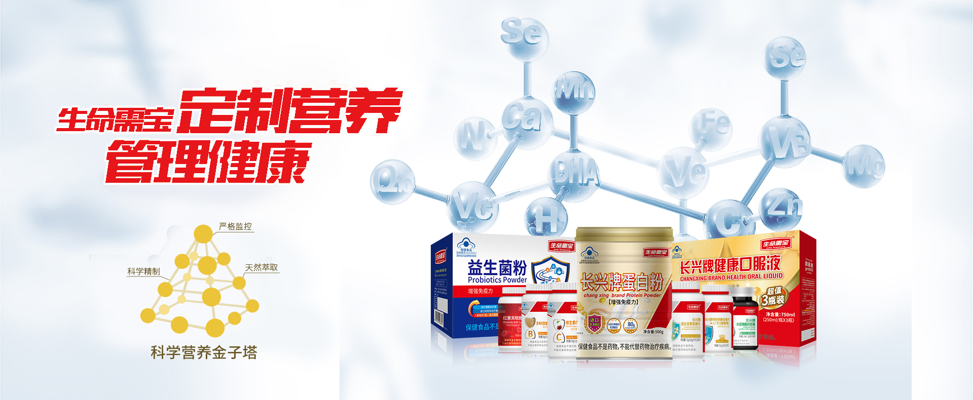 生命需宝经过对中国人的身体素质、饮食习惯和营养水平的充分研究后发现,每个个体在人生的不同阶段,其对营养的需求差异巨大,只有站在科学的高度,根据不同人群的特定需求,有差异化地定制并补充营养,才能最大化地发挥膳食营养的作用,让每个个体都享受更健康精彩的人生。因此,生命需宝倡导“定制营养,管理健康”,力求以更专业的方式为消费者提供优质的营养素和健康管理服务,取得品牌、消费者与合作伙伴之间的共赢。